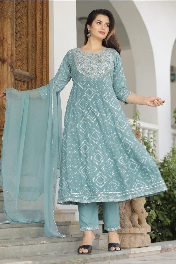 Beautiful Indian Women Handwork Rayon Printed Kurti With Pant Etsy Israel